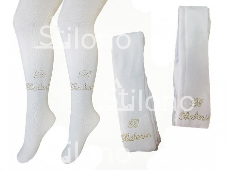 Колготки для девочки со стразами махровые белые 1-115 К